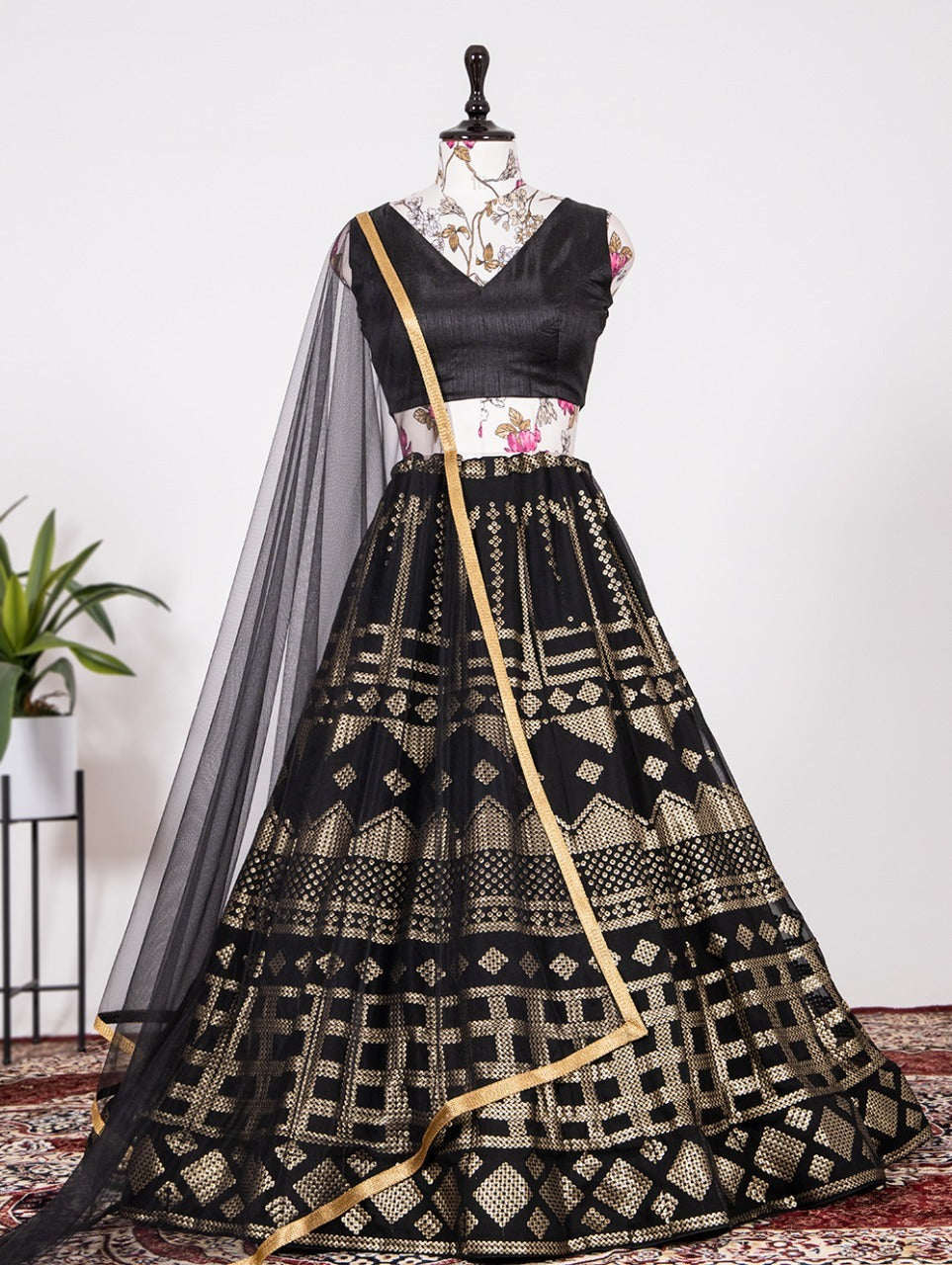 black lehenga styled and perfectly crafted with Sequins Lehenga Choli