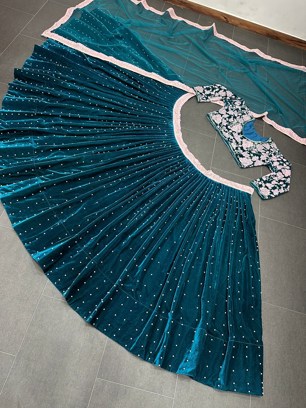 Designer Specials Velvet Lehenga Choli With Heavy Embroidery And Sequence Work