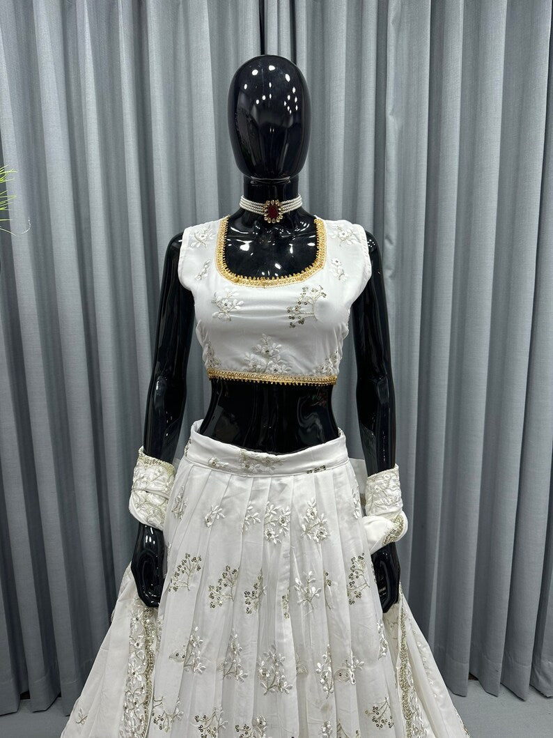 Most Attractive Party Wear White Sequin Work Lehenga Choli