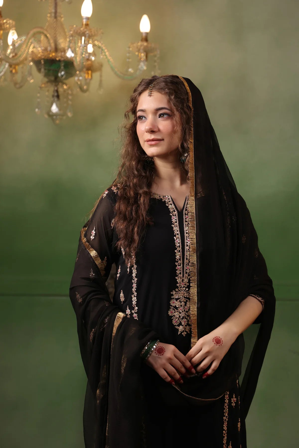 New Launching Black Color Kurti set with Heavy Georgette and Embroidery Work