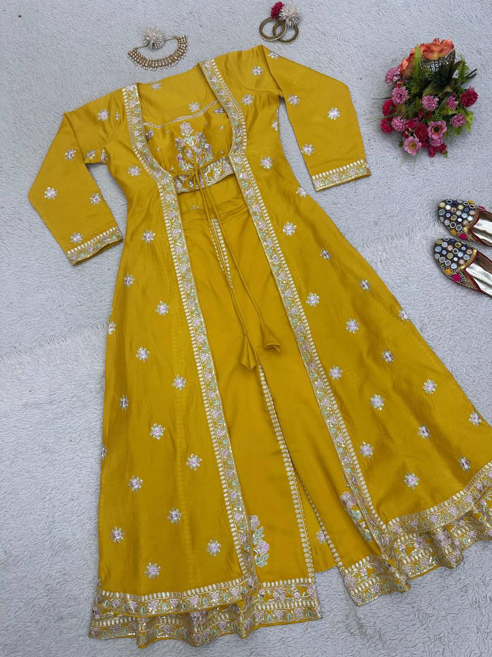 Tabby Organza Mukesh Work Kurta Suit