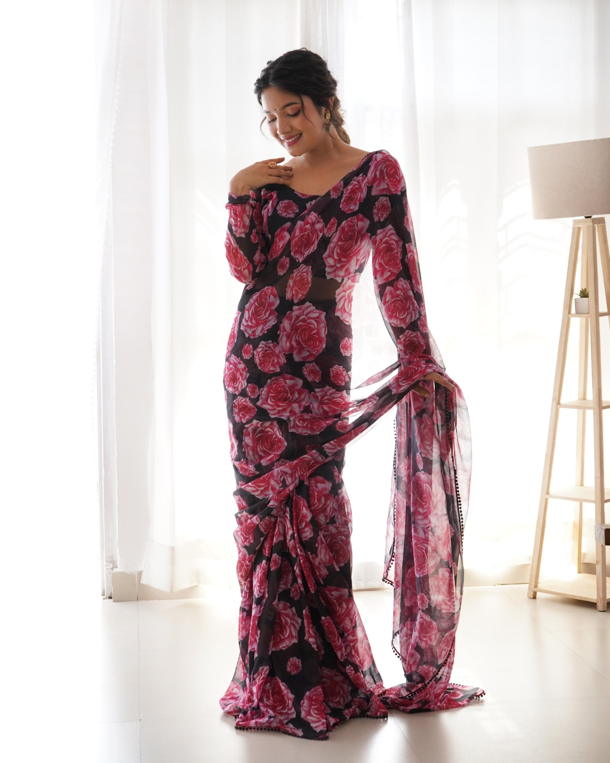 READY TO WEAR PREDRAPPED SAREE WITH FULL STTICHED BLOUSE