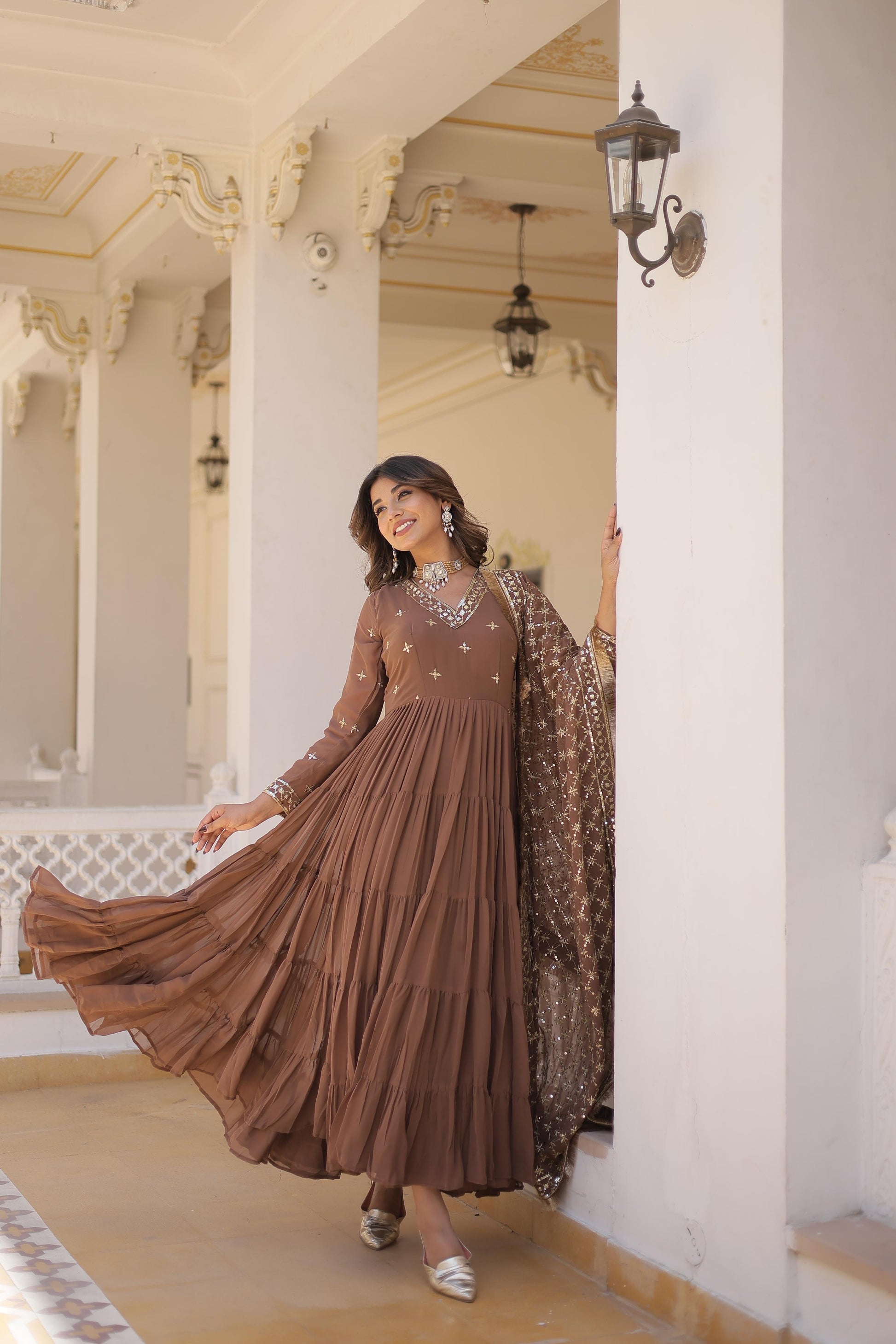 Discover the elegance of traditional attire with our Designer Festive Wear Gown featuring Attractive Sequins Embroidery Work.